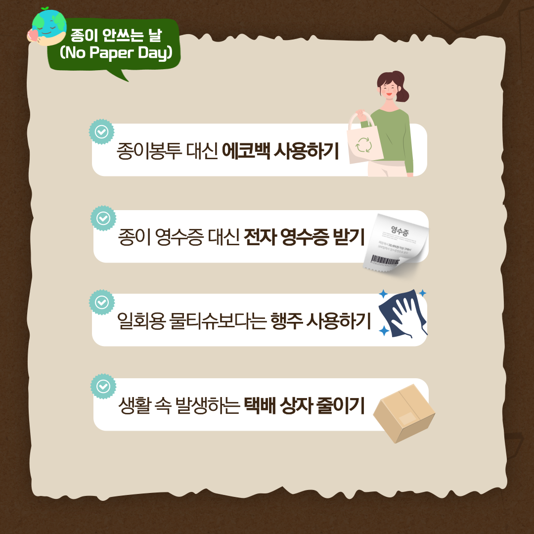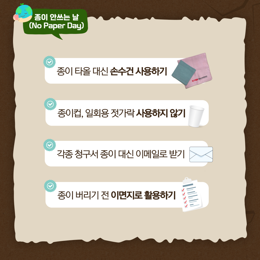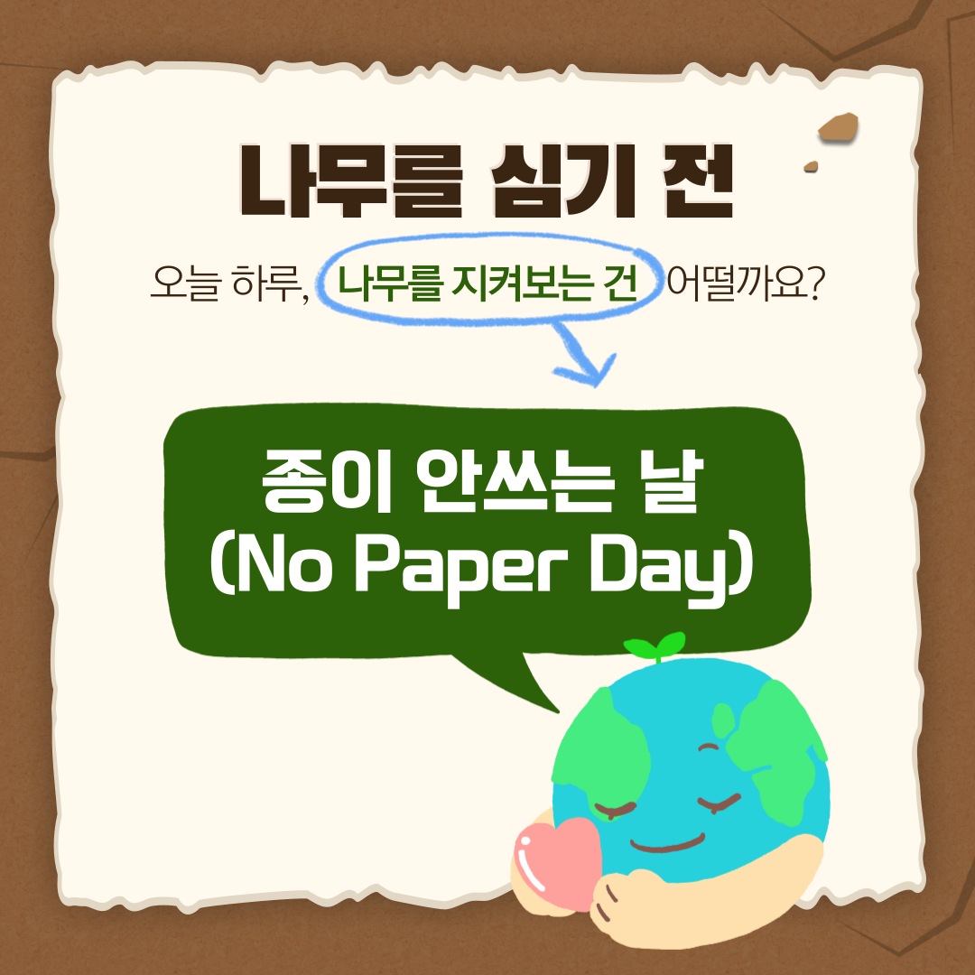 나무를 심기 전 오늘 하루, 나무를 지켜보는 건 어떨까요? 종이 안쓰는 날!