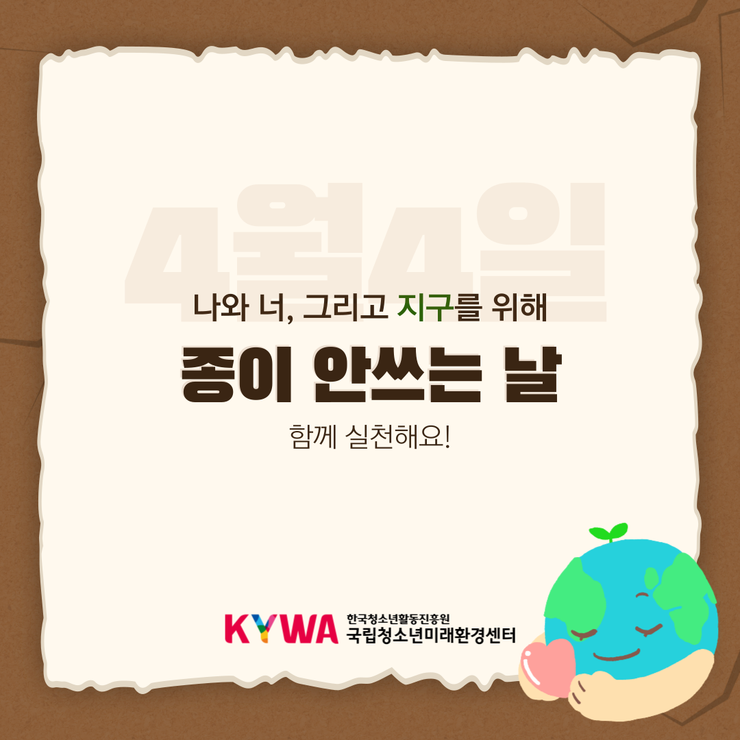 4월 4일은 종이 안쓰는 날(No Paper Day)입니다.
